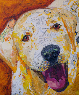 Did you know that the rhyme "Old Mother Hubbard" had two or three pages of verses? It provided a wealth of yellow and black illustrations and text for my yellow lab collage. When you think about it, all musical lyrics are basically poems and rhymes, so this dog seemed fitting to me.