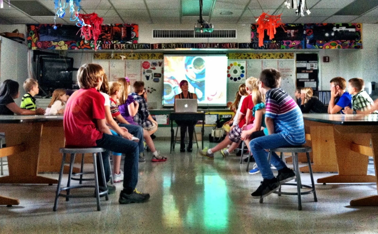 Keeping in contact with Ms. Novak from Stadium School since last year about presenting to her kids, we decided to pair my visit up with my ArtPrize trip. Stadium is a school of choice, a place where parents can choose to send their children because they value the focus it offers on the arts. Many of the children in this school have parents who are artists and are used to being exposed to art, music, dance and theatre. These kids were ready to soak up everything I had to teach them.